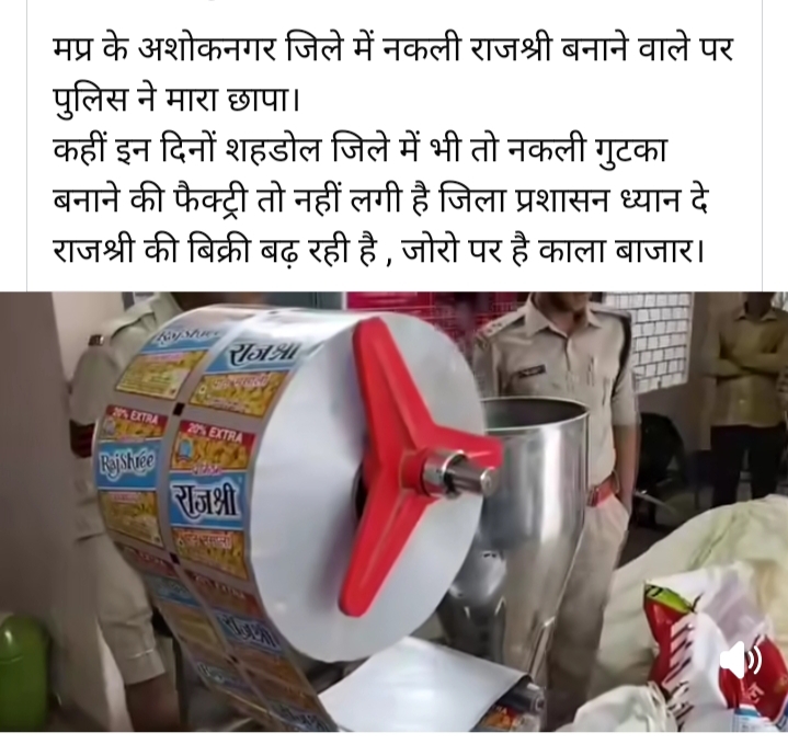 कटनी -अशोक नगर में गत दिवस पुलिस ने बड़ी कार्रवाई करते हुए नकली राजश्री तंबाकू बनाने वाली फैक्ट्री का भंडाफोड़ किया था। इस कार्रवाई में भारी मात्रा में नकली उत्पाद, पैकिंग सामग्री, मशीनें और रसायन जब्त किए गए थे। इस खुलासे के बाद पूरे प्रदेश में नकली राजश्री बेचने वाले गिरोहों की सक्रियता को लेकर कई सवाल खड़े हो गए हैं। सबसे चिंताजनक बात यह है कि हाल के दिनों में कटनी जिले में भी राजश्री की बिक्री अचानक तेजी से बढ़ी है, जिससे यहां भी ऐसे किसी अवैध कारोबार के संचालित होने की आशंका गहराने लगी है।